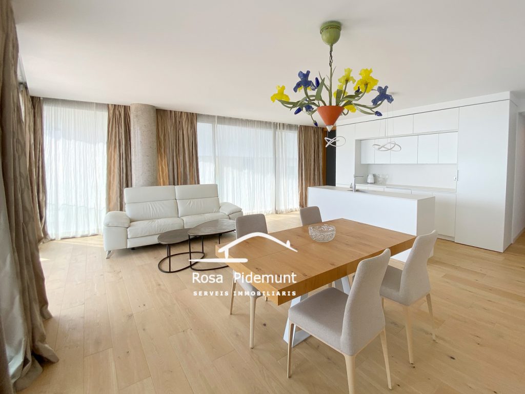 L’apartament situat a la cinquena planta, consta de 114 m2 construïts i una àmplia terrassa de 28 m², tenim un saló-menjador amb cuina americana molt ampli, una suite amb la seva pròpia cambra de bany, dos dormitoris dobles, un bany complet i un lavabo.