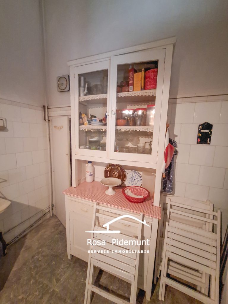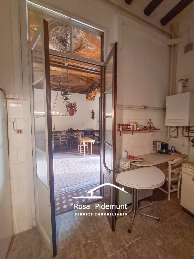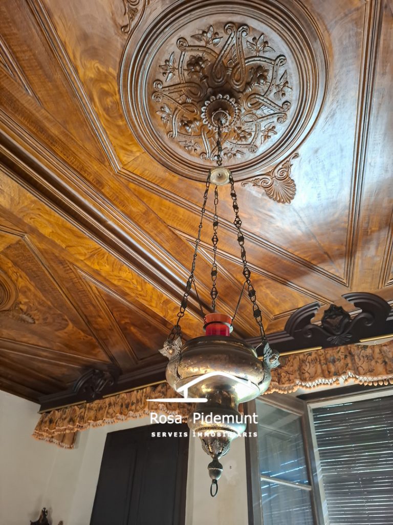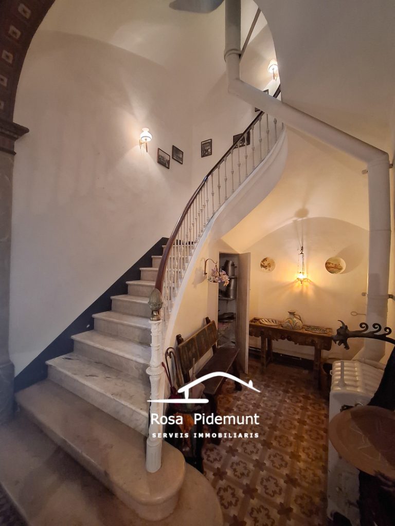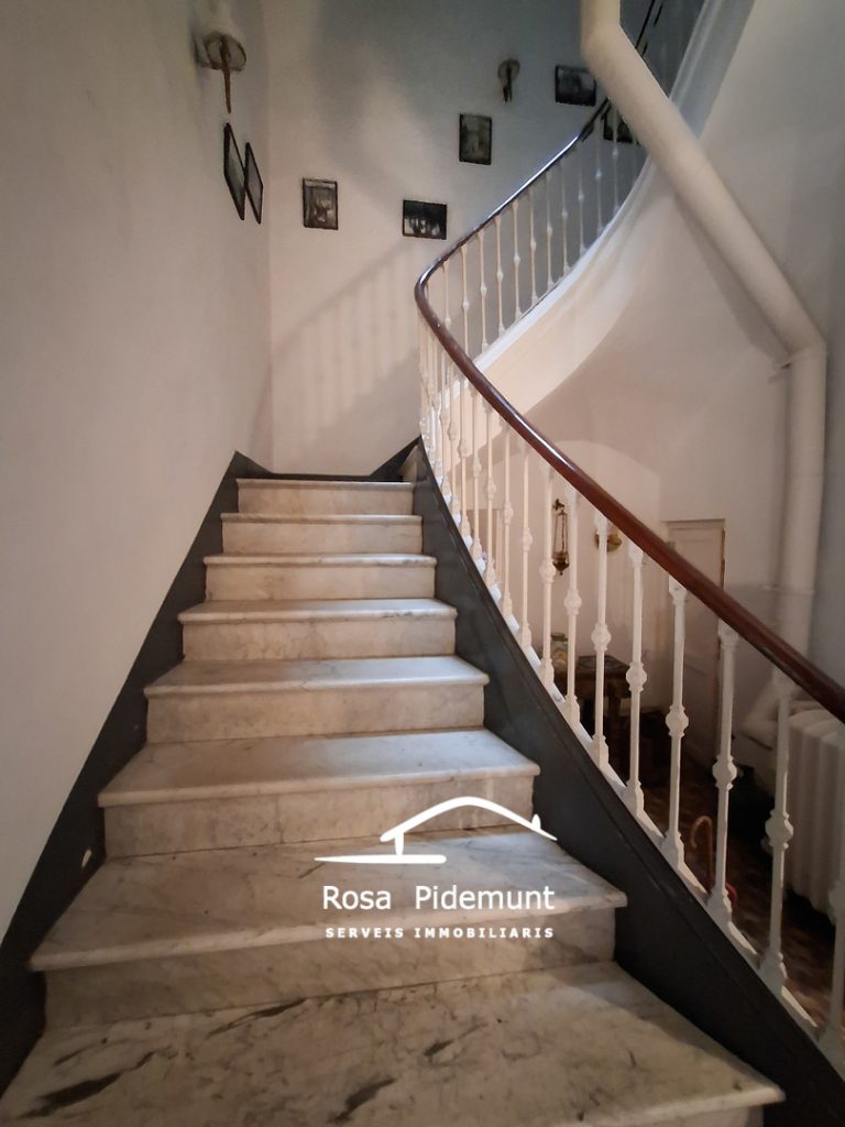 Planta baixa: tenim 2 salons (o habitacions), menjador amb sostre de fusta de melis i cuina independent amb sortida al gran jardí, ampli rebedor i una majestuosa escala d’accés a les plantes superiors.
